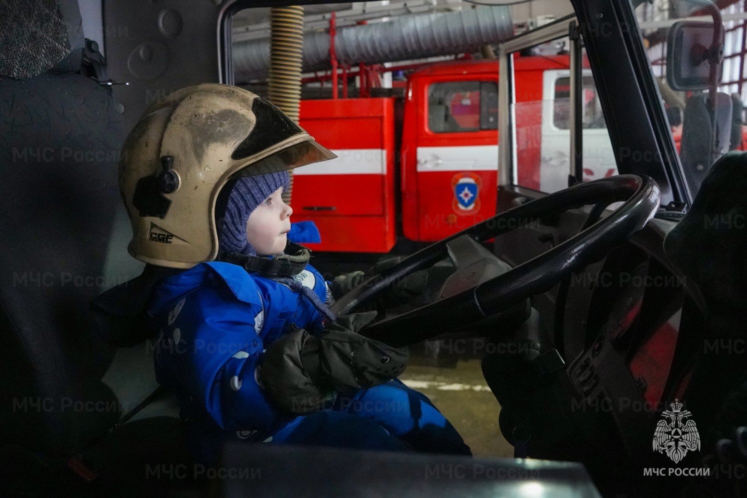 Наибольший восторг у юного гостя вызвали пожарные автомобили и мотоциклы. Ему показали их оснащение и рассказали для чего применяется данное оборудование. Мальчик с неподдельным интересом слушал пожарного, стараясь не упустить ни одной детали. Восторг переполнил его, когда ему позволили включить сирену. Кульминацией экскурсии стал подъем на автолестнице, установленной на фасаде части.